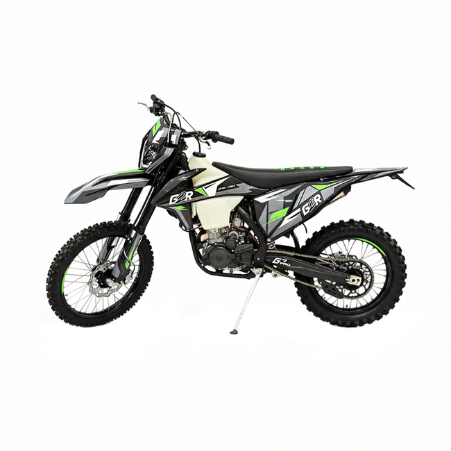 Позвольте представить расширенный обзор мотоцикла **G2R PRO G7 NB300 174MN-5A**: ### Общие сведения: - **Модель:** G2R PRO G7 - **Двигатель:** 174MN-5A - **Объем двигателя:** 300 куб. см - **Цвет:** зелёный - **Общая длина:** 1490 мм - **Размер колес:** переднее колесо диаметром 21 дюйм, заднее колесо диаметром 18 дюймов ### Конструктивные особенности: - **Категория:** Эндуро — мотоцикл для езды как по обычным дорогам, так и по легким грунтовым участкам. - **Марка:** Компания G2R Motorcycles, известная своим высоким качеством продукции и демократичными ценами. - **Конструкция рамы:** Сделана из высококачественного хромированного стального профиля, обеспечивающего прочность и долговечность конструкции. - **Подвеска:** Передняя телескопическая вилка и задний амортизатор улучшают стабильность и управляемость мотоцикла, делая поездку комфортной и безопасной. - **Торможение:** Гидравлические дисковые тормоза обеспечивают быстрое и точное торможение, повышая безопасность при движении. - **Электрика:** Электрическая система соответствует международным стандартам, обладает достаточной производительностью и надежностью. - **Защита от перегрева:** Установленная система воздушного охлаждения сохраняет оптимальную рабочую температуру двигателя даже при продолжительной нагрузке. ### Практическое применение: Данный мотоцикл рекомендован для широкого круга пользователей: - Любители туризма и путешествий на дальние расстояния оценят комфортную посадку и широкие возможности для размещения багажа. - Начинающие водители найдут удобным интуитивное управление и простую конструкцию, облегчающую обучение. - Активные спортсмены смогут наслаждаться всеми преимуществами надежного мотоцикла на кроссовых мероприятиях и прогулочных поездках. ### Стоимость и расходы: Несмотря на свою функциональную насыщенность, G2R PRO G7 имеет доступную цену, что делает его привлекательным предложением для покупателей среднего сегмента рынка. Расходы на эксплуатацию минимальны благодаря низкому уровню потребления топлива и редким поломкам. ### Вердикт: **G2R PRO G7 NB300 174MN-5A** сочетает в себе надежность, функциональность и доступность, что делает его прекрасным выбором для настоящих фанатов мотосферы.печат владельцу долгие годы верной службы и незабываемых ощущений от каждого выезда.